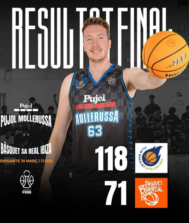 El Club Bàsquet Pujol Mollerussa va protagonitzar una nova exhibició aquest cap de setmana en superar amb autoritat el Sa Real Instalaciones Arevalo Ibiza per un clar 118 a 71. L’equip del Pla d’Urgell va dominar el partit de principi a fi i va deixar pràcticament sentenciat l’enfrontament ja en els primers minuts.